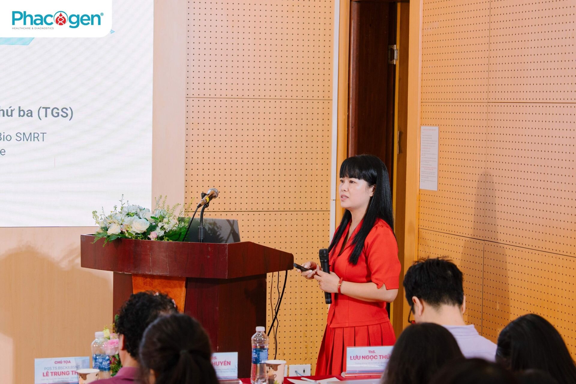 TS.BS.Vũ Thị Huyền – Giảng viên chính Bộ môn Y Sinh học – Di truyền, Trường Đại học Y Hà Nội; Bác sĩ Trung tâm Di truyền lâm sàng, Bệnh viện Đại học Y Hà Nội với Báo cáo: "Tiêu chuẩn xét nghiệm di truyền y học: Đảm bảo chất lượng trong ứng dụng lâm sàng"